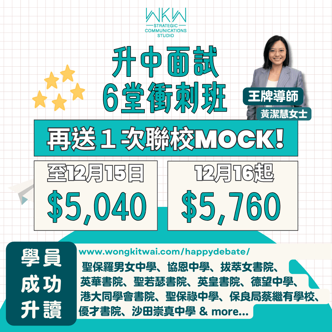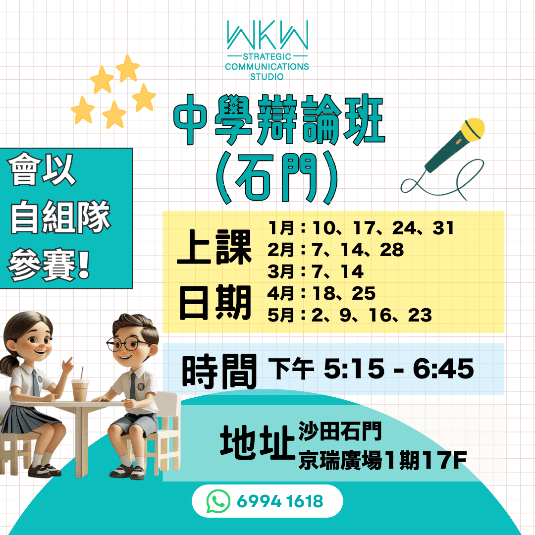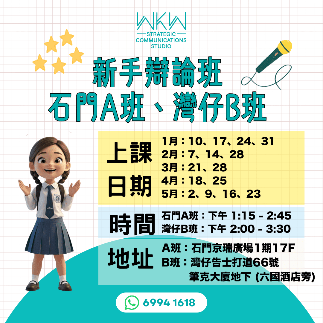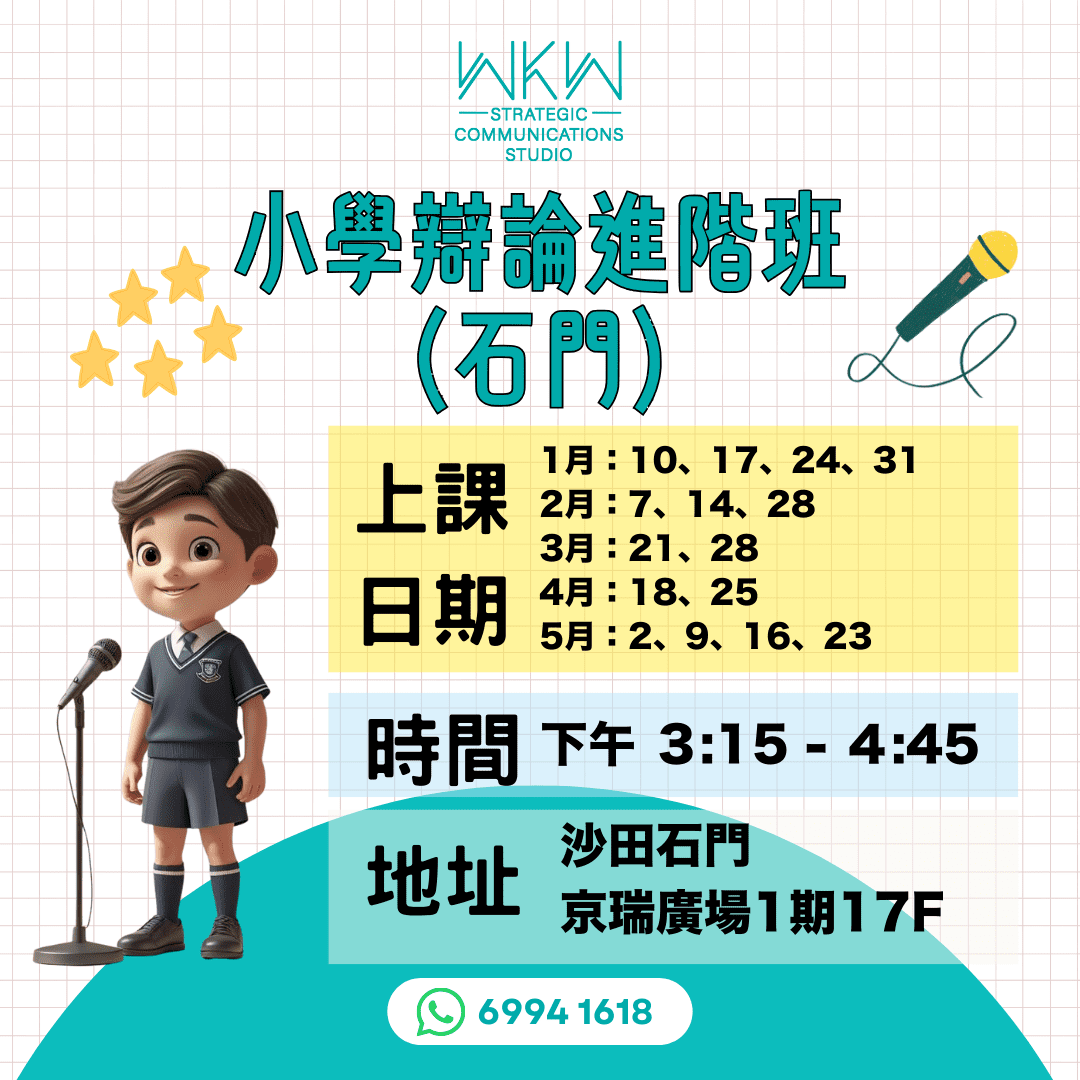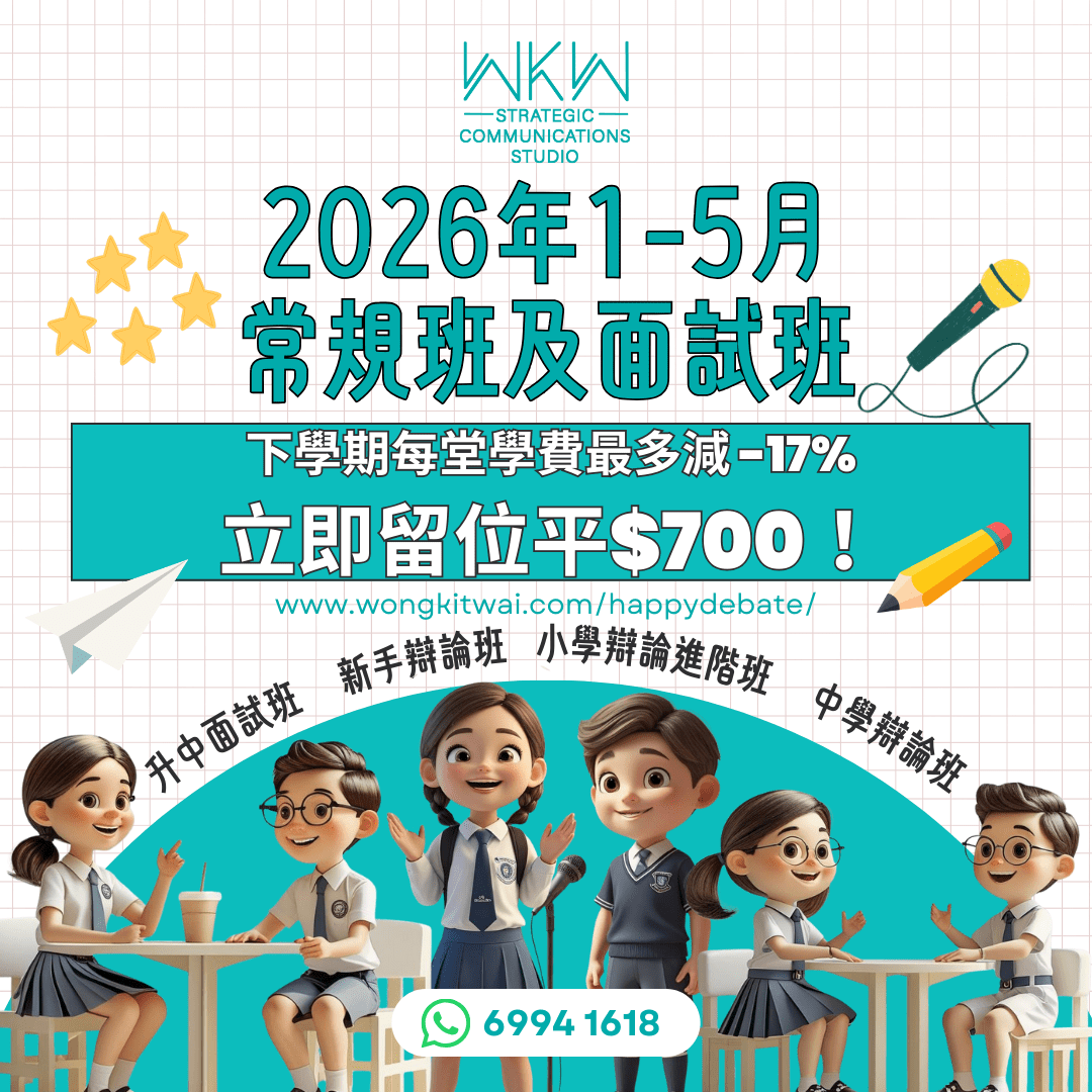 不過,我們建議上辯論課的最低班級要求是小四;小三或以下的學員比較適合學習演講與寫作。